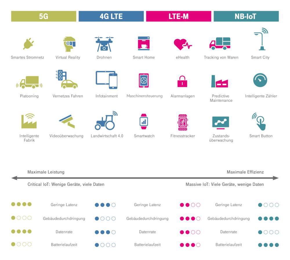 Das Narrowband-IoT (NB-IoT) der Detuschen Telekom bietet Ihnen viele Vorteile, wie geringen Energieverbrauch, tiefe Gebäudedurchdringung, geringe Kosten, eine einfache Installation und permanente Verschlüsselung der Kommunikation.
